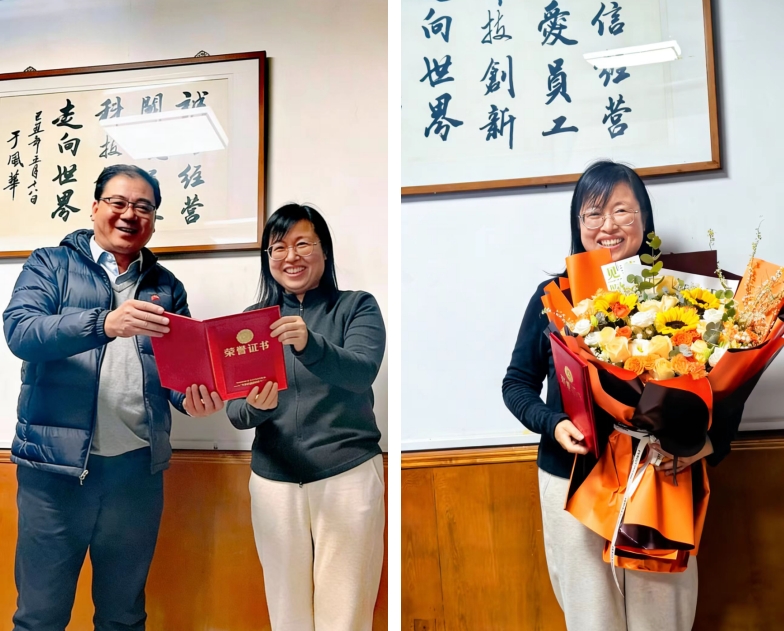 ㅤㅤ庆祝仪式上,现场播放了精心制作的成长纪念视频,一张张珍贵的老照片、一个个难忘的工作瞬间,串联起张丽丽同志与公司携手同行的二十载时光,也让在场员工深受触动。董事长邵长勇研究员亲自为张丽丽同志颁发入职二十周年荣誉证书并送上鲜花,证书上镌刻着:“二十年,是青春;二十年,是坚守;二十年,是一段与企业共成长的光荣历程。张丽丽同志二十年来始终坚守岗位、担当作为,是公司发展的见证者、参与者与推动者。谨致以最崇高的敬意与最诚挚的感谢!”,字字句句既是对张丽丽同志二十载辛勤付出的高度肯定,更是对其深耕种业、甘于奉献精神的由衷赞誉。邵长勇董事长在致辞中表示,张丽丽同志的二十年,是与公司同成长、共进步的二十年,她用坚守诠释初心,用实干书写担当,这份对种业事业的热爱与执着,值得全体员工学习。公司的发展,离不开每一位员工的默默耕耘与无私奉献,正是无数个像张丽丽同志一样的奋斗者,汇聚成公司高质量发展的不竭动力。