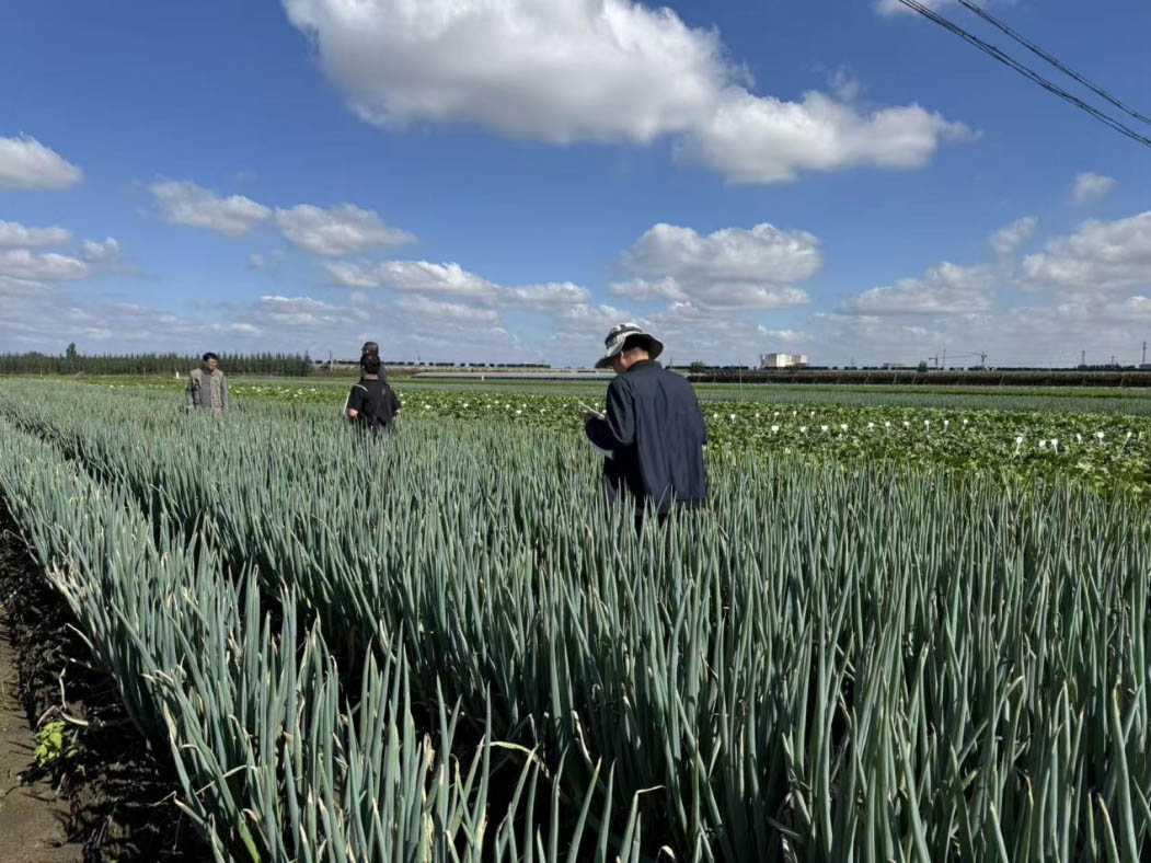 在考察过程中,梁凤臣研究员一行深入田间地头,重点查看了公司多个大葱新品种的株高、葱白长度与粗细、叶片健康度、根系发育状况、抗病性及抗倒伏性等主要农艺性状。同时,团队还详细了解了各品种在全生育期的水肥管理、病虫害防控及极端气候下的生理反应,系统评估了其抗逆性与区域适应性。